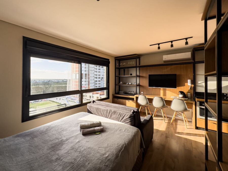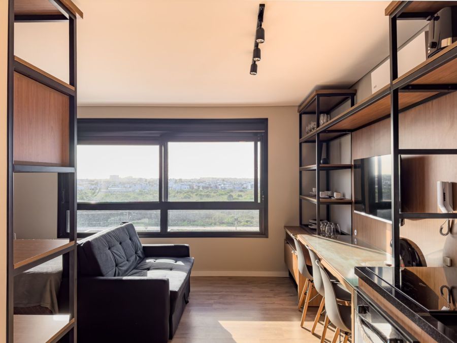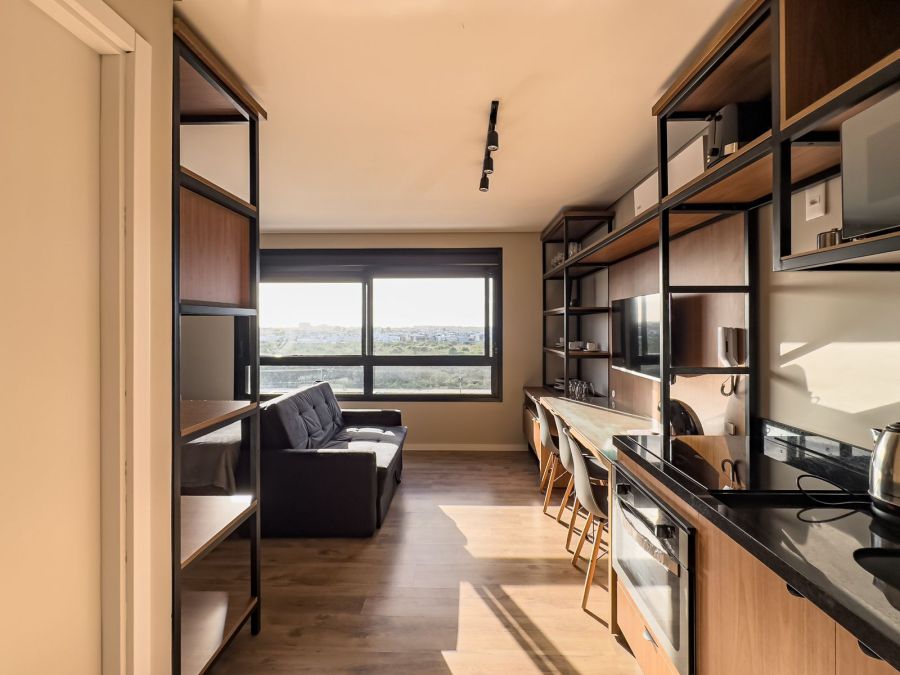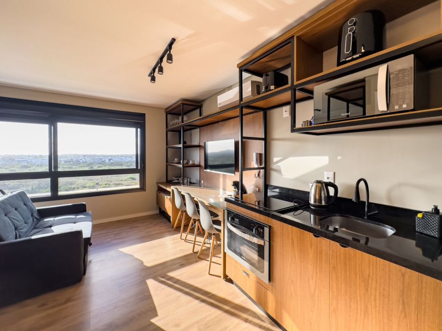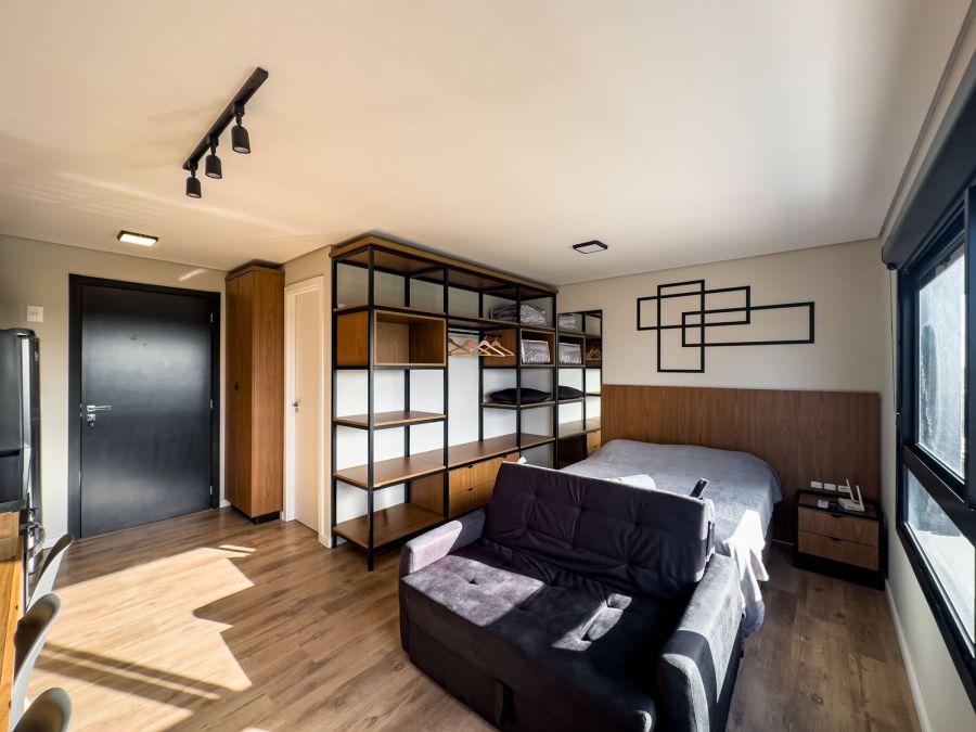 Excelente loft de 30m² localizado no 9º andar, no desejado Parque Una. Totalmente mobiliado e equipado, o imóvel conta com móveis planejados, eletrodomésticos e todos os utensílios – inclusive louças – oferecendo praticidade e conforto desde o primeiro dia.